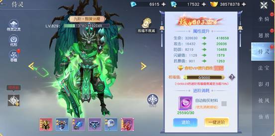 其一:通过“侍灵进阶石”进行进阶,祝福值越高升阶几率越大,“侍灵进阶石”可以通过侍灵副本、商城、BOSS等方式获得。